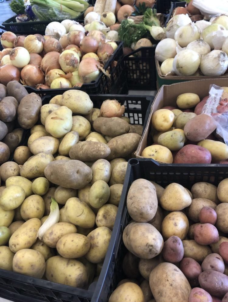 I exchange my high-vis vest for an apron and latex gloves, to help sort the food. I join a table of ladies who are inspecting boxes of snap peas, ensuring that any that are over-ripe are carefully extracted from the pile and composted. Once all the sorted food donations are laid out ready for packing, I take a moment to observe the spread, which reminds me more of a grocery store than a food bank. The vast array of food on display, the vibrant colours of the vegetables, and the fruit’s sweet smell is truly impressive.